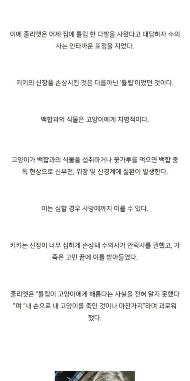 주인이 사온 ‘튤립’ 향기 맡고 ‘무지개 다리’ 건넌 고양이
