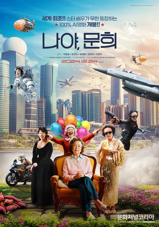 <나야, 문희>는 AI를 활용하여 국민배우 나문희의 다채롭고 흥미로운 모습을 가득 담은 작품이다. 영화에 등장하는 캐릭터들은 AI가 생성한 나문희의 음성과 영상으로 만들었다. 스타배우가 참여하여 실제로 연기한 것이 아니라, 생성형 AI로 만든 영화가 극장에 개봉하는 것은 세계 최초이다.