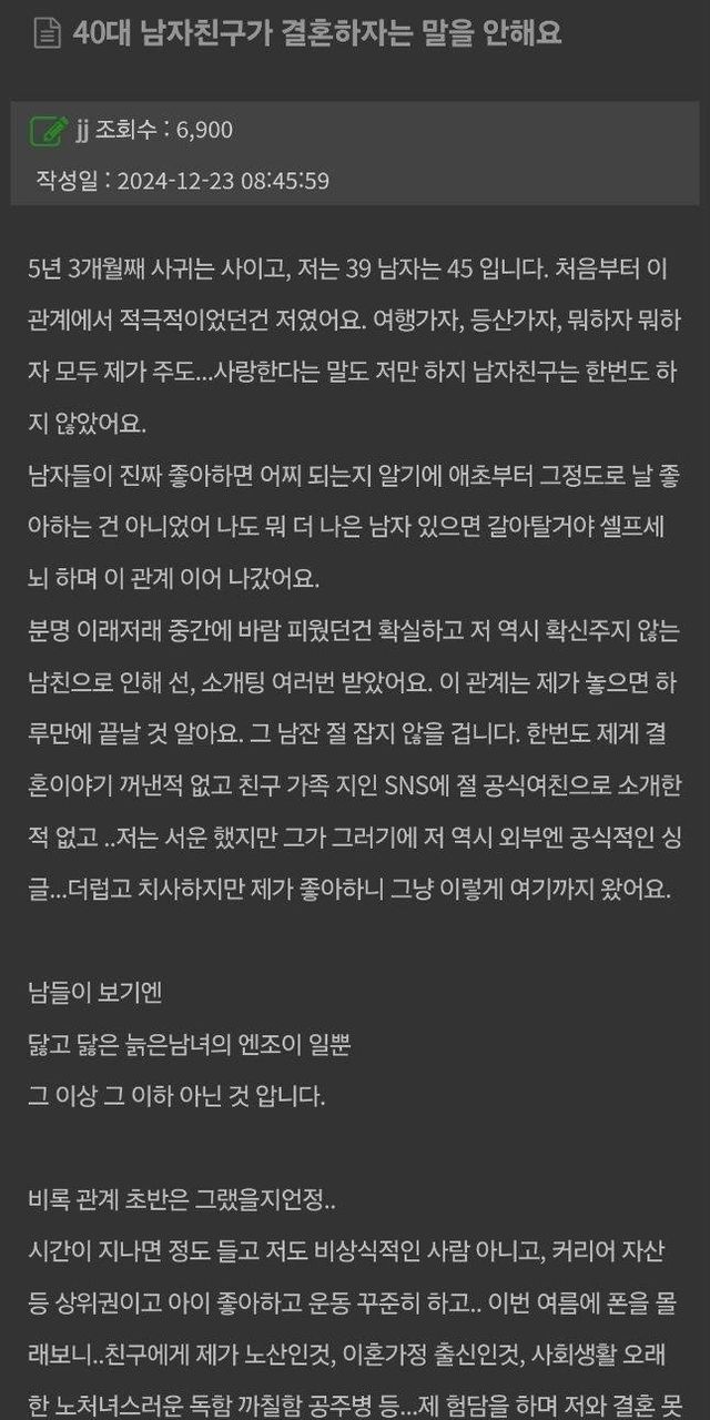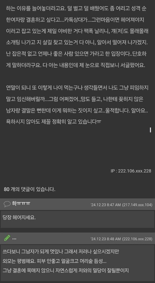 처음 만났을땐 여자도 34살이었으니 빨리 버렸어야했는데5년이나 만나서 39살 됨...