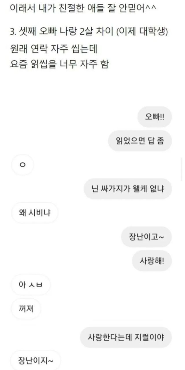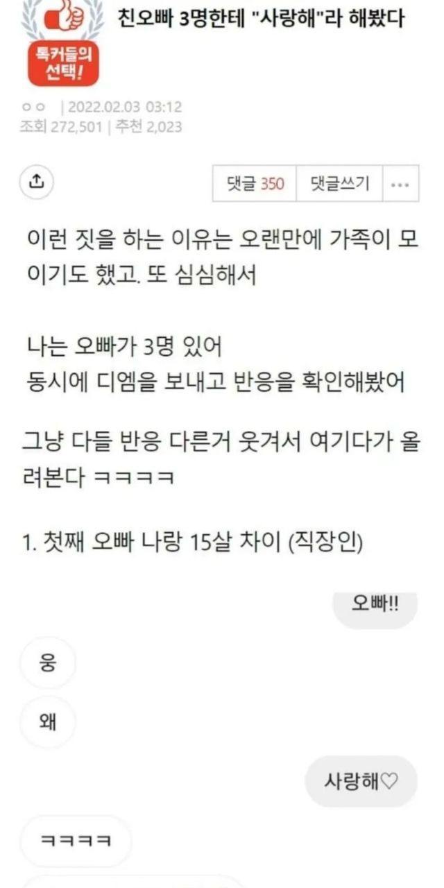 친오빠 3명한테 “사랑해”라고 해봤다.