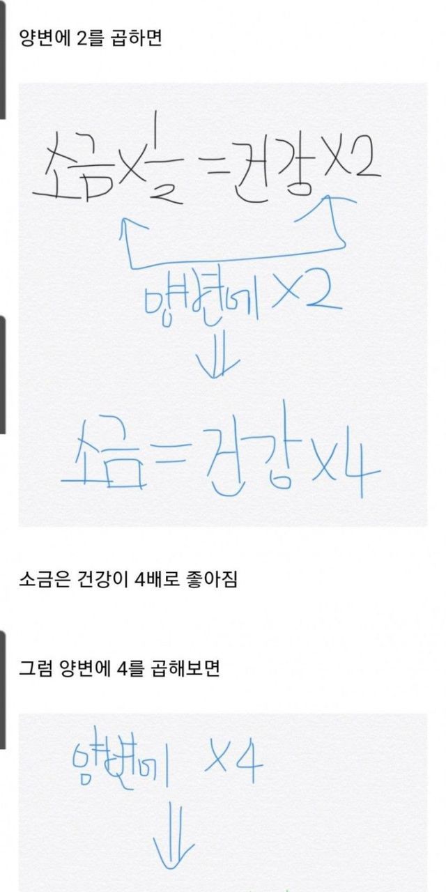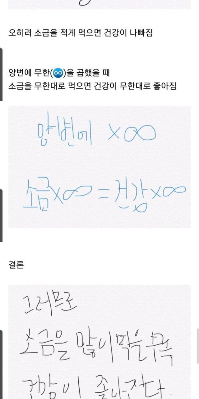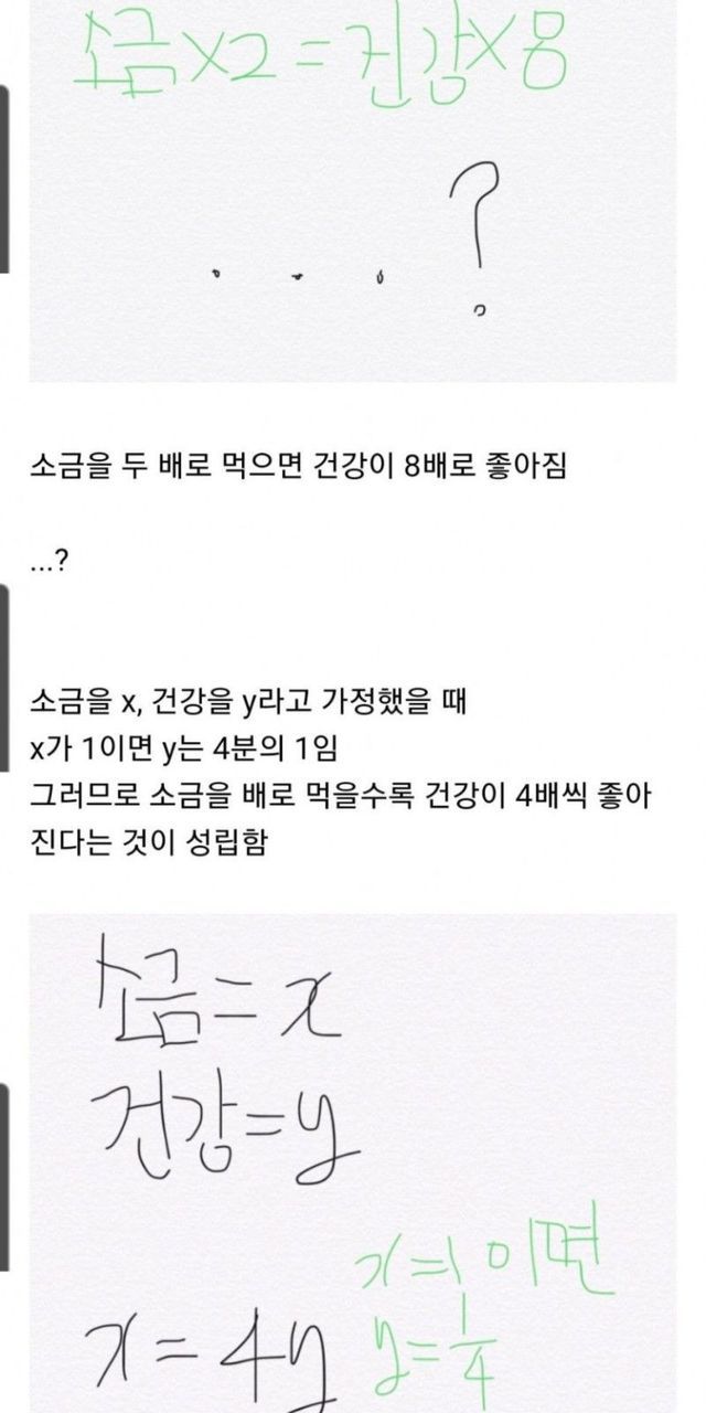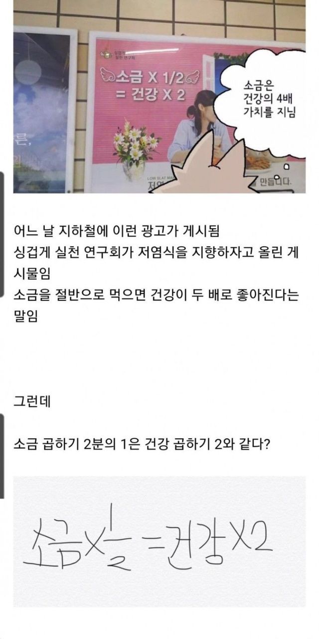 소금 X 1/2 = 건강 X 2.