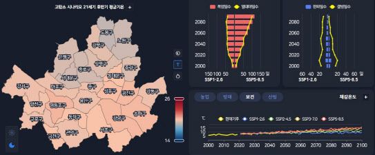 24일 기상청에 따르면, 그동안 시범서비스로 운영되던 ‘기후변화 상황지도’가 지난 23일부터 본격적으로 운영되고 있다. 기후변화 상황지도는 과거부터 미래 2100년까지 각 동네의 기온, 강수량, 바람 등 기후 요소에 대한 변화 추세와 미래 전망을 누구나 쉽게 알아볼 수 있는 지도 기반의 기후 안내 서비스이다.