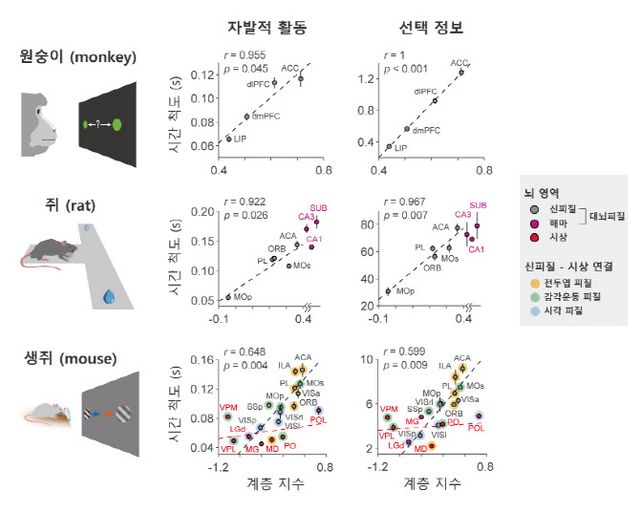 즉, 포유류 뇌에서 상위 정보 처리 영역으로 갈수록 정보처리 시간이 길어진다는 공통적 패턴이 발견되었고, 이는 뇌의 다양한 기능을 위한 신경망 구조에 대한 구체적인 설명을 가능하게 했다.