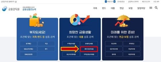 ‘금융상품 한눈에’ 누리집 접속 화면. |