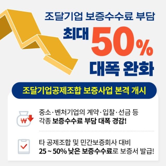[와이뉴스] 조달기업공제조합의 보증사업이 본격 개시됨에 따라 조달시장에 참여하는 중소‧벤처기업의 계약·입찰·선금 등 각종 보증수수료 부담이 대폭 경감된다.