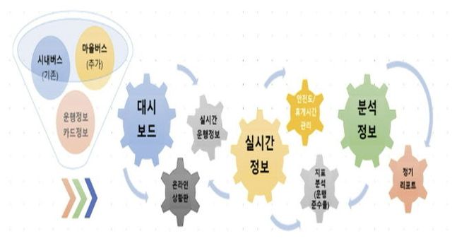 이 솔루션은 경기도 버스정보시스템을 통해 수집된 실시간 공영버스 위치 정보를 활용하여, 버스의 운행 상태를 실시간으로 모니터링할 수 있는 시스템이다. 또한, 위치 정보를 데이터베이스화하고 이를 구조화·통계화함으로써 공영버스의 운행 준수율, 막차 시간 준수율 등 주요 지표를 생성해 체계적인 운행 관리를 지원한다.