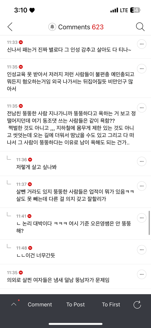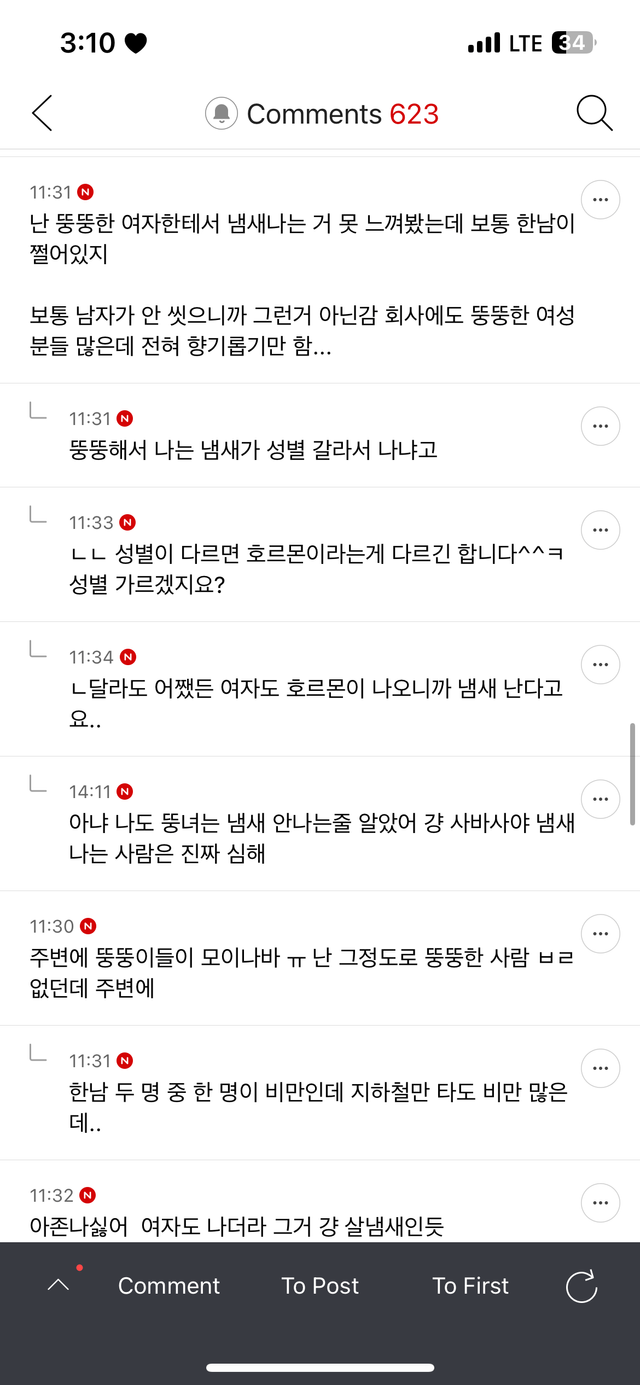 뚱뚱이들 쉰내난다고 했는데 긁힌 여시언냐들