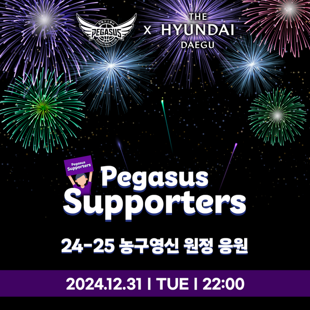 또 대구 대표 백화점인 더현대 대구와 협력해 원정응원에 함께하지 못한 대구시민들을 위해 응원단 70명을 모집하고 31일 백화점 문화센터 8층에서 ‘페가수스 농구단×대구응원단 합동응원’을 진행할 예정이다. 대구응원단은 더현대 대구에서 직접 모집하며, 자세한 참가 방법은 더현대 대구 공식 인스타그램을 통해 확인이 가능하다.