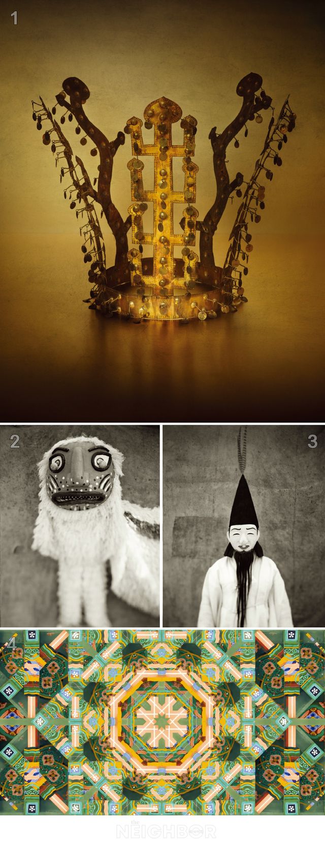 1 황금 KR 045, 2023 2 탈 봉산탈춤 16, 2002 3 탈 강릉관노 03-1, 2002 4 코리아 판타지, 2017