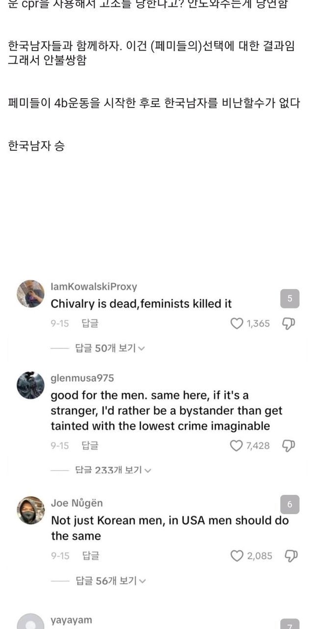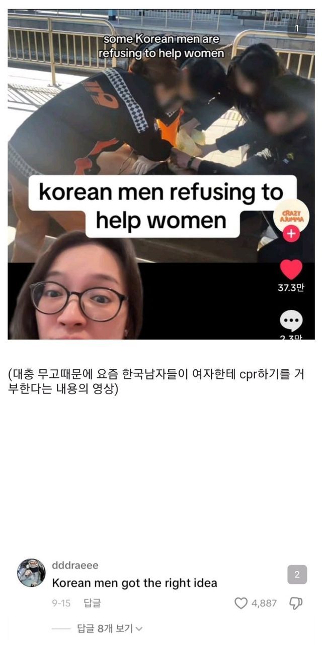 cpr안하는 한국남자 외국반응