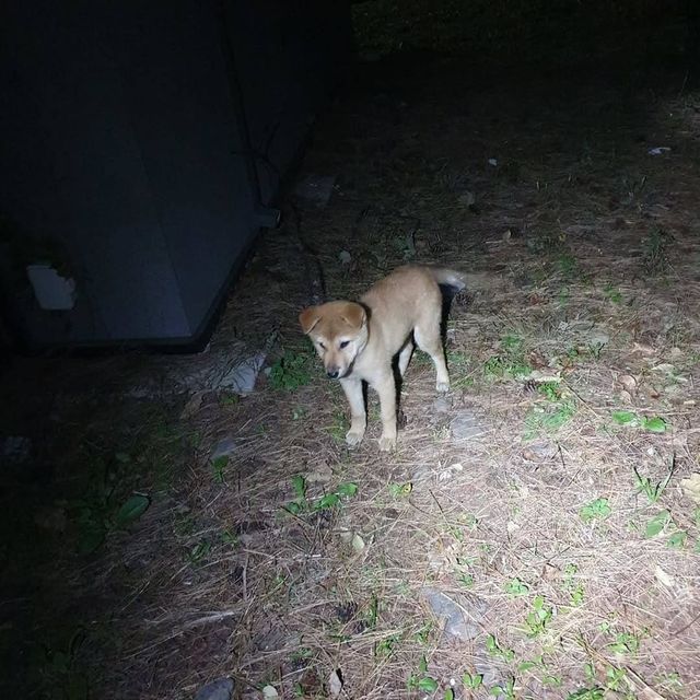 그는 "어두워지면 이용하는 사람도 거의 없는 한적한 등산로 입구의 공중화장실 건물에 누군가 3개월 남짓한 어린 누렁이를 작업용 끈으로 묶어 두고 갔다"라고 설명했다.
