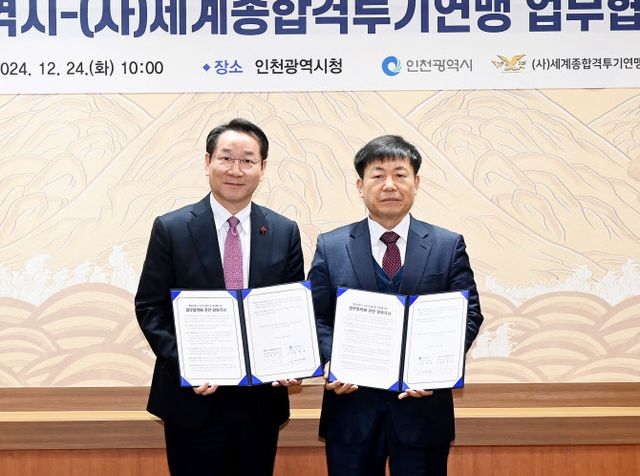 인천시는 24일 시청 접견실에서 ㈔세계종합격투기연맹과 이 대회의 성공적 개최를 위한 업무협약을 했다고 밝혔다.