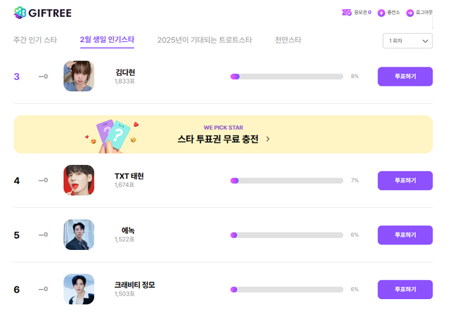 기프트리는 포털에 '기프트리' 를 검색하여 간편하게 접속할 수 있으며 네이버, 카카오 아이디를 통해 누구나 간편하게 가입할 수 있다. 기사 읽기, 광고 보기 와 같이 간단한 미션을 수행해 하루 최대 74장의 투표권을 획득할 수 있으며 획득한 투표권은 사용기한 없이 원하는 스타에게 자유롭게 사용할 수 있다.