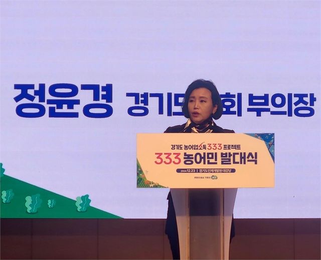 정윤경 도의원은 12월 23일 ‘333 농어민 발대식’에 참석해 ‘경기도 농어업 소득 333 프로젝트’에 참석한 농어민 300여 명을 응원했다.(사진=경기도의회)