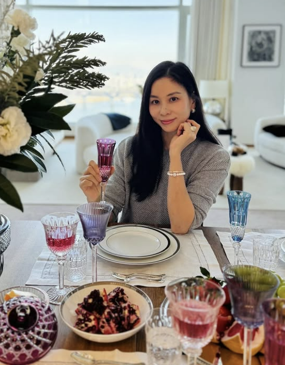 사진 속 고소영은 파티 음식이 차려진 테이블에 앉아 포즈를 취했다. 보라색 잔을 들고 턱을 괸 그는 여전히 우아한 분위기로 눈길을 끌었다.