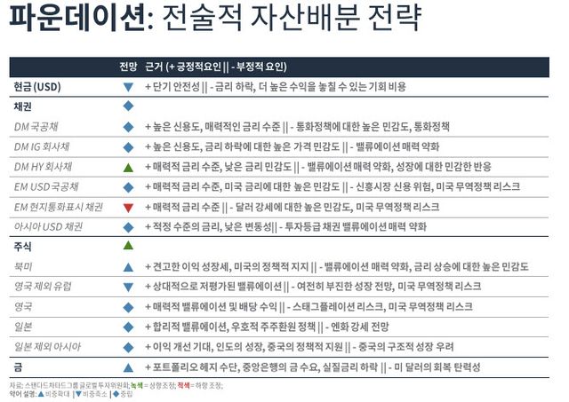 구체적으로 인플레이션을 방어하기 어려운 현금 비중은 축소하고, 위험자산에 무게를 둔 기존 투자 방향성이 여전히 유효하다고 분석했다. 주식 내에서는 미국, 인도와 같이 펀더멘털 우위를 지닌 시장 중심으로 접근할 것을 제안했다. 또한 채권, 금과 대안투자 전략 등 다양한 자산을 함께 활용해 균형 잡힌 포트폴리오를 갖춰 나갈 것을 제안했다. 채권 내에서는 타 채권 대비 높은 수준의 이자 수익을 확보할 수 있는 선진시장 하이일드(DM HY)채권의 성과가 좋을 것으로 예상했다.