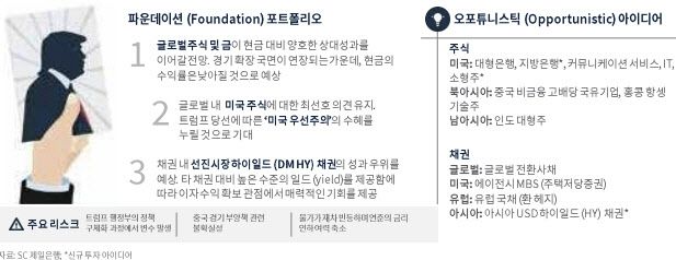 SC제일은행은 자산관리(WM) 고객을 위한 ‘2025년 글로벌 금융시장 전망 및 투자전략 보고서’를 24일 발표했다. SC제일은행과 모기업인 스탠다드차타드(SC)그룹의 투자 전략 전문가들은 이번 보고서를 통해 2025년 투자 테마를 ‘트럼프 카드’ 활용법으로 제시했다.