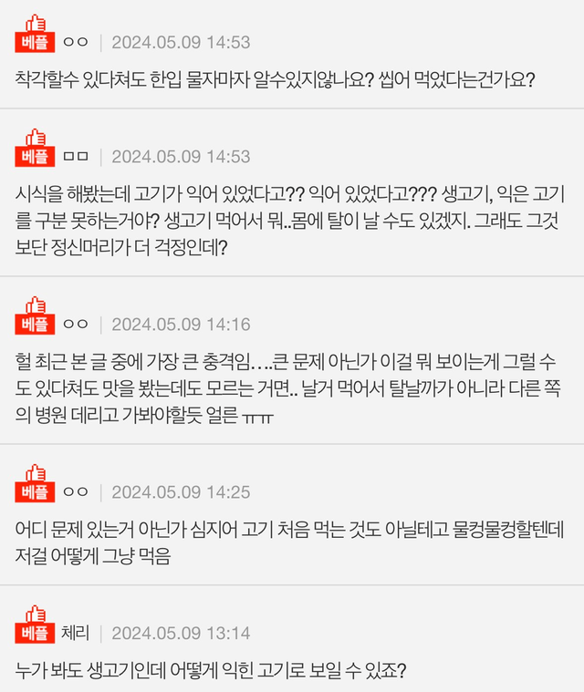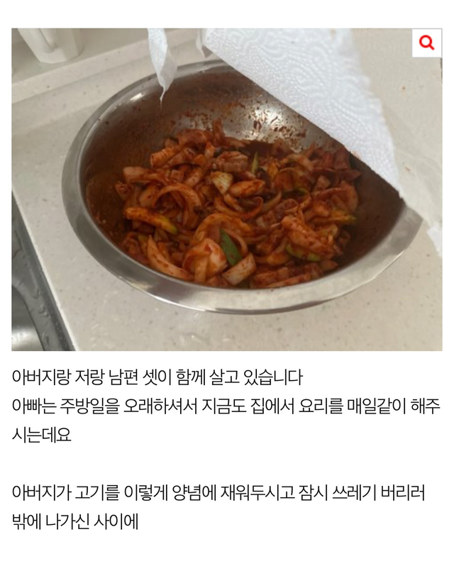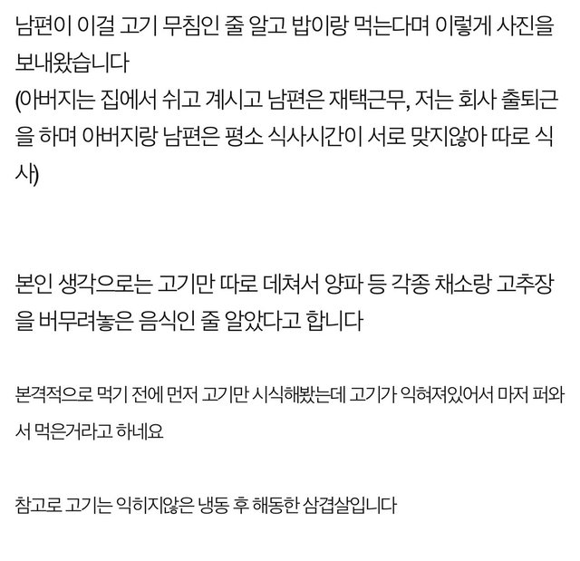 재워둔 고기를 생으로 먹은 남편