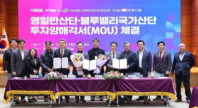 [파이낸셜경제=김예빈 기자] 이철우 경북도지사는 24일 포항시청에서 이강덕 포항시장과 이비덴그라파이트코리아㈜, ㈜투디엠 등 2개 기업과 포항시 도의원과 시의원을 비롯한 지역 산업 관계기관 30여 명이 참석한 가운데 투자 양해각서(MOU)를 체결했다.