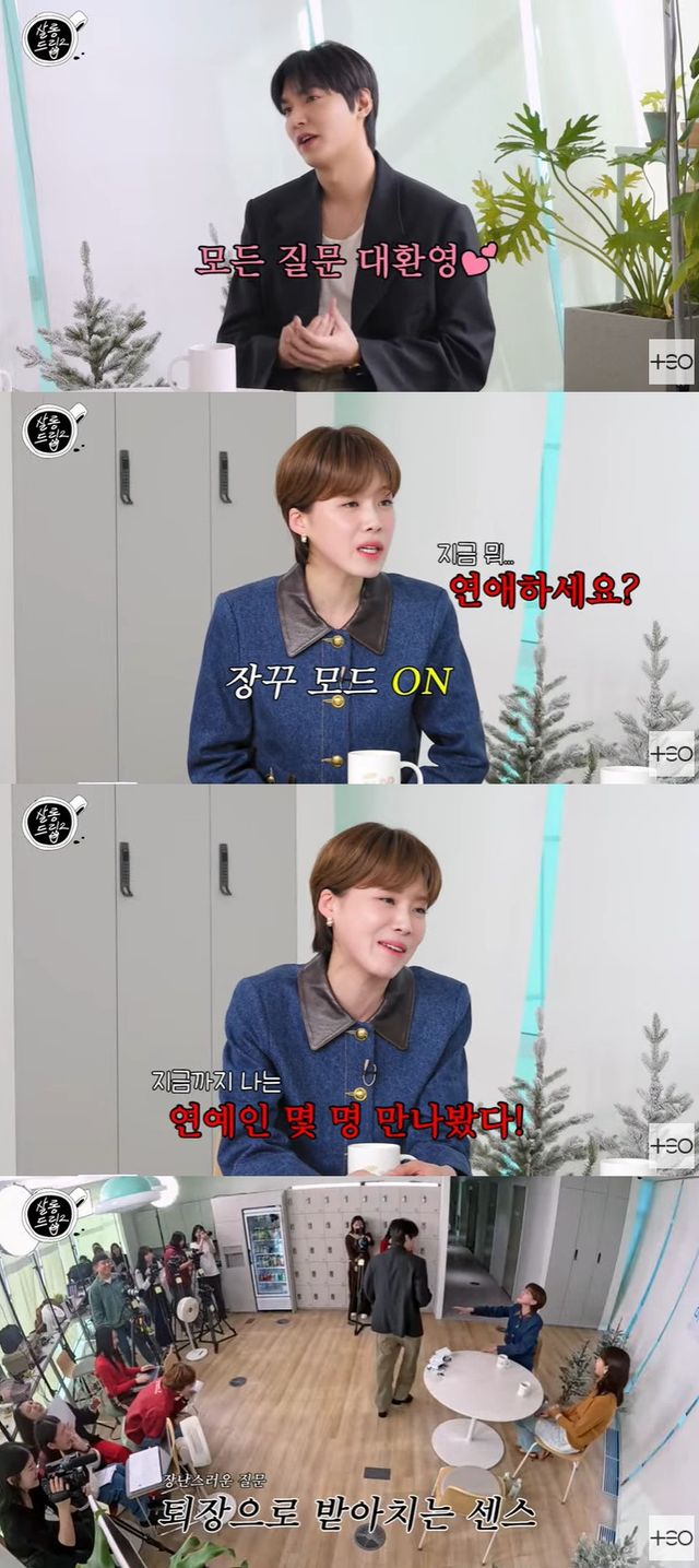 이를 놓치지 않은 장도연은 "지금 연애하냐"라고 돌직구를 날리더니 "지금까지 나는 연예인 몇 명 만나봤다?"며 불편한 질문을 거듭 던졌다.