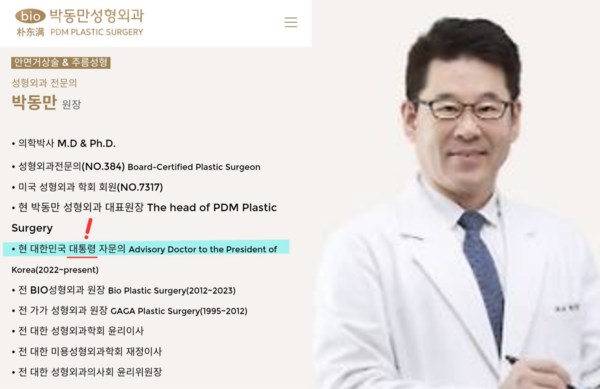 김 여사가 방문한 병원은 박동만 원장이 운영하는 성형외과로, 그는 2022년 7월 대통령 자문의로 임명된 인물이다.