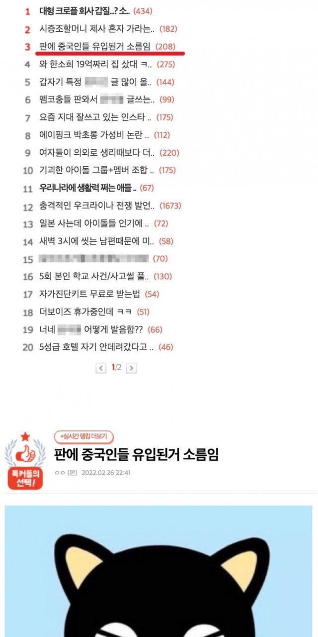 현재 네이트판 인기글 3위.