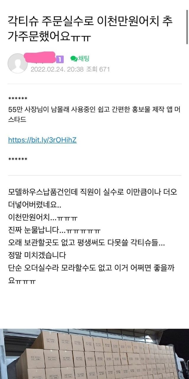 직원 실수로 휴지를 2,000만 원어치 주문했습니다.