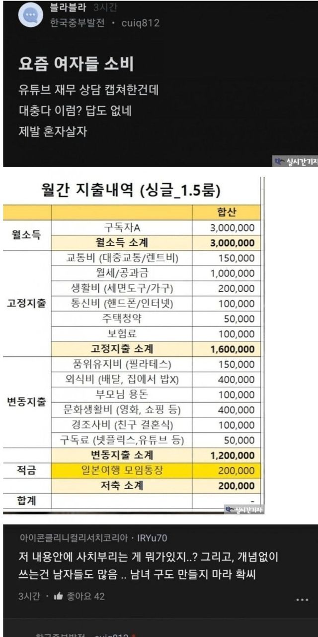 300 버는 여자의 소비내역 과소비다 vs 아니다