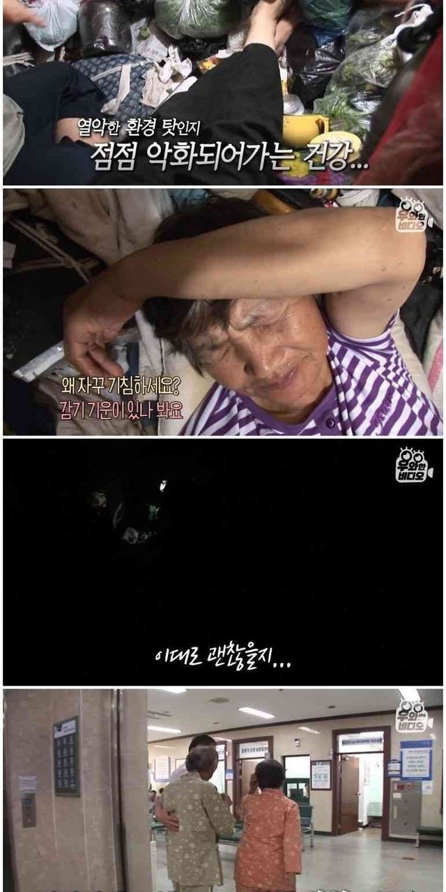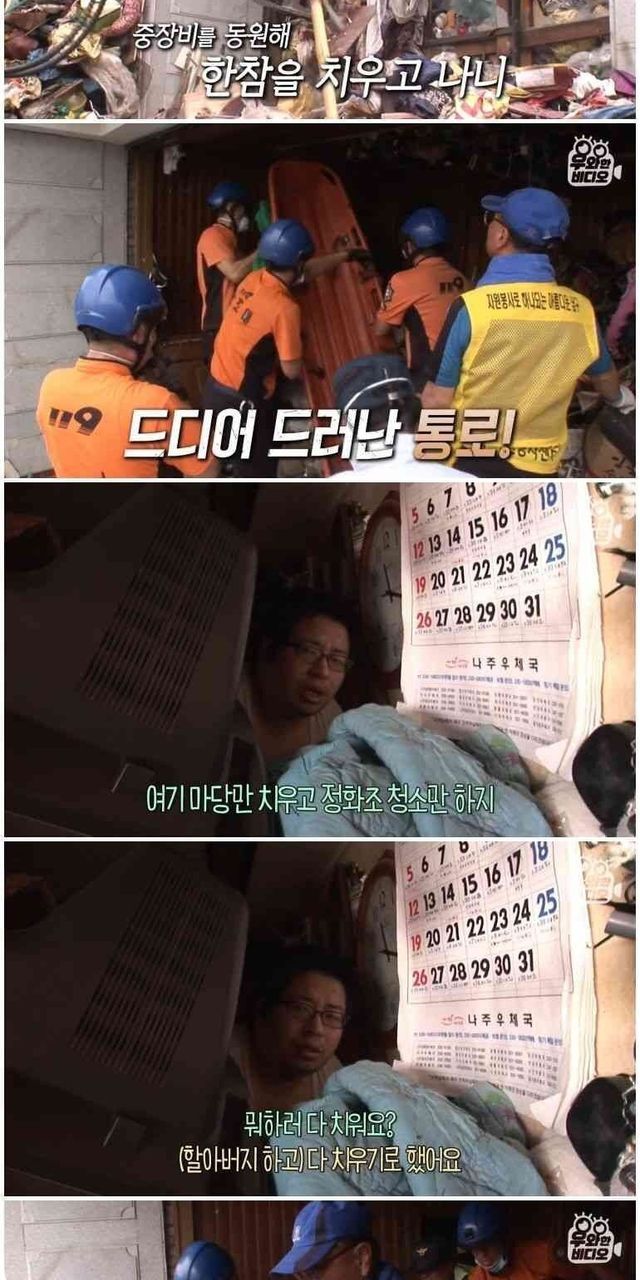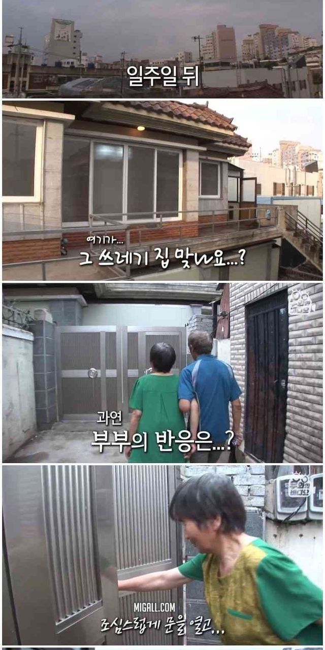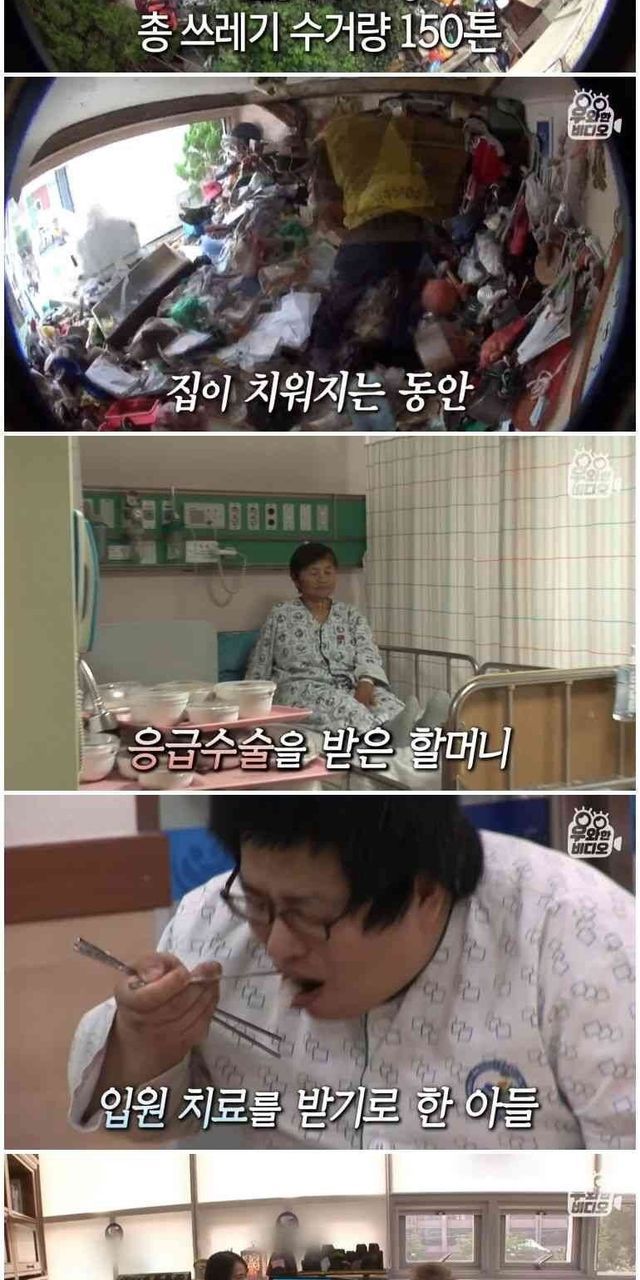 쓰레기집에 사는 부모와 아들.