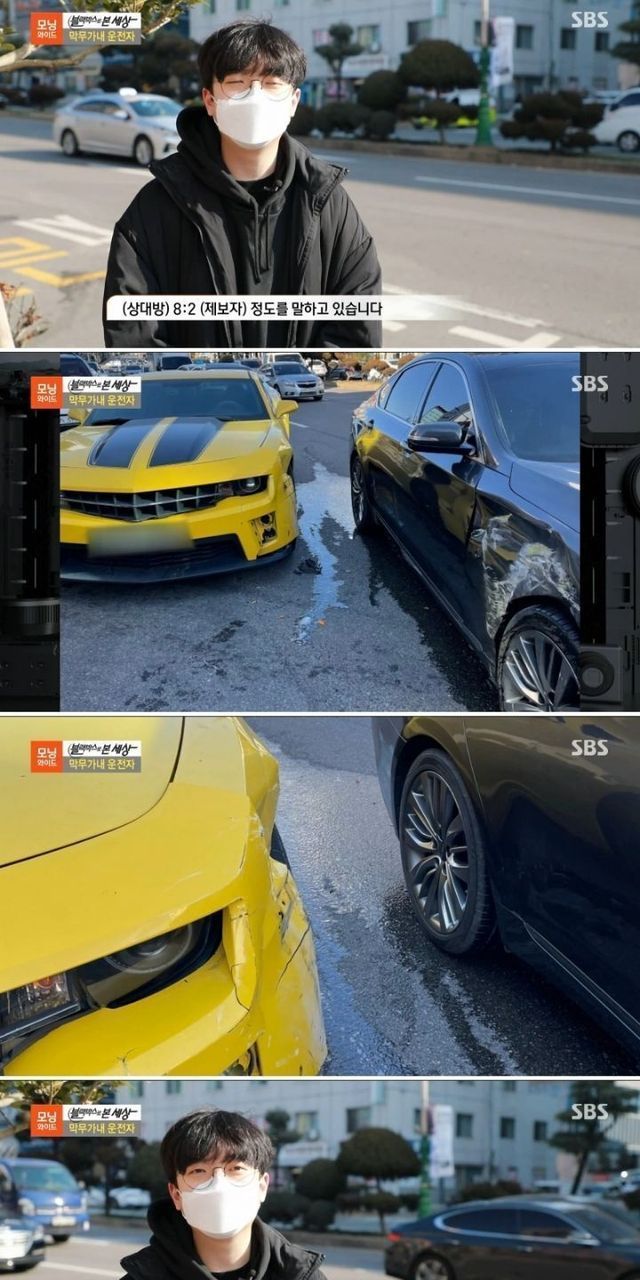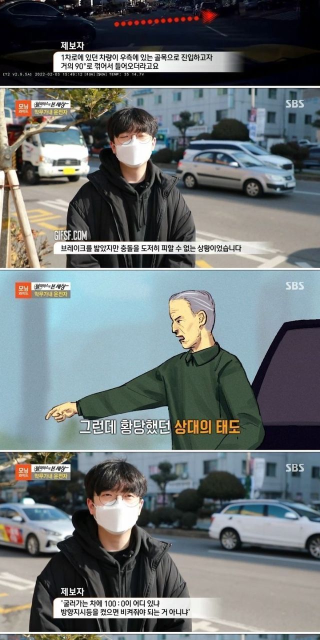 굴러가는 차에 100:0 이 어디 있냐는 운전자.