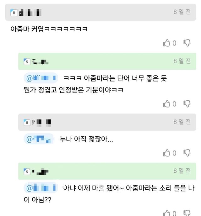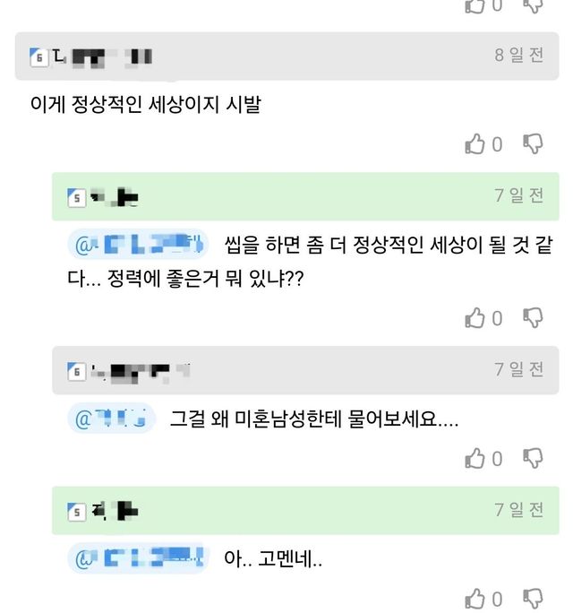 (댓글 초록색 줄이 작성자임)