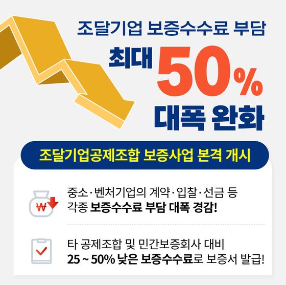 조달청은 24일 조달기업공제조합의 보증사업이 본격 개시돼 조달시장에 참여하는 중소·벤처기업의 계약·입찰·선금 등 각종 보증수수료 부담이 최대 50% 줄어든다고 밝혔다.