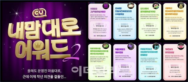 지난해 말 열렸던 제1회 내 맘대로 어워드보다 수상자 수, CU 포인트 금액, 시상품 등 행사 규모를 대폭 늘렸다.