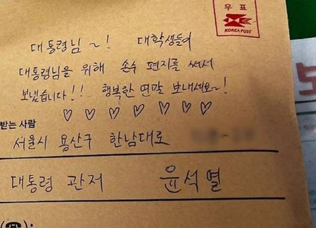 우편 봉투 겉면에는 “행복한 연말 보내세요”라는 응원 문구가 적혔지만, 카드 안에는 윤 대통령을 강하게 비판하는 내용이 담겨 있었다.