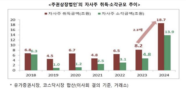 이에 금융위가 지난 1월 ‘코리아 디스카운트’(한국 증시 저평가) 해소 차원에서 일반주주의 이익을 보호하는 방향의 자사주 제도 개선 방안을 내놓았고, 이에 대한 후속 조치로 입법 절차가 마무리된 것이다.