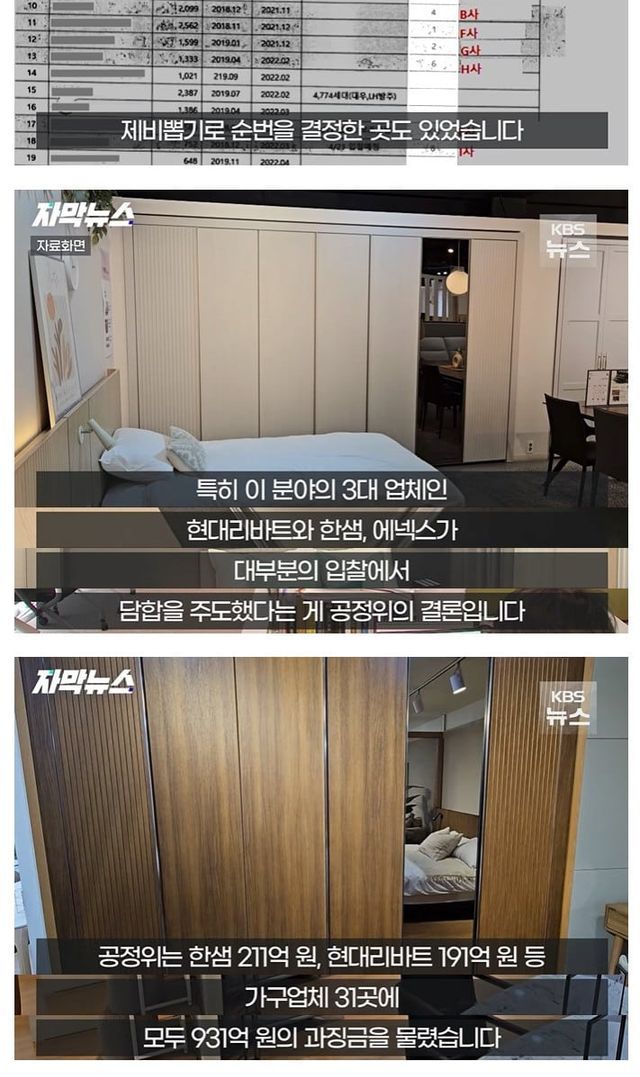 빌트인 가구업체 10년동안 담합으로 나눠먹음