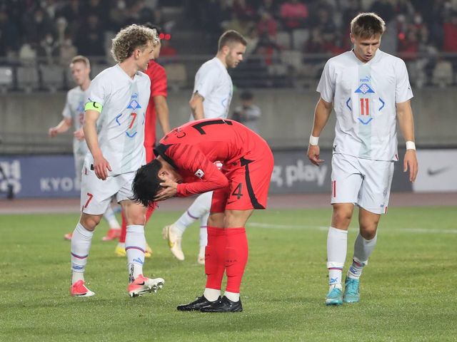 홍철이 2022년 11월 11일 오후 경기 화성시 화성종합경기타운 주경기장에서 열린 축구 국가대표팀 친선전 대한민국과 아이슬란드의 경기 전반 슈팅 실패 후 아쉬워하고 있다 / 뉴스1