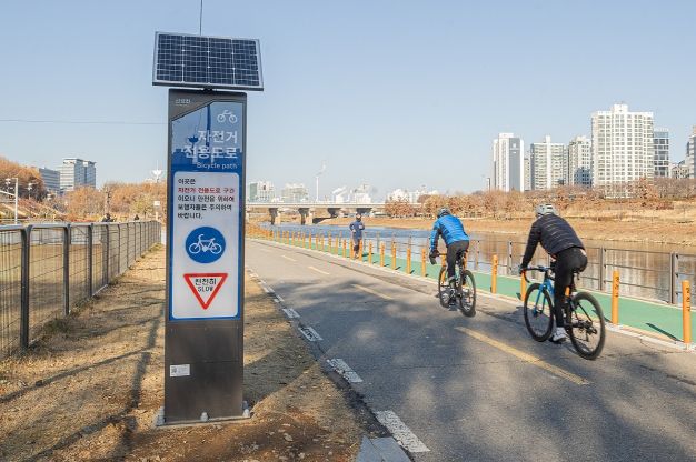 한편, 구는 전용도로 침범, 자전거 고속주행, 자동차 무단 진입 등으로 인한 안전사고를 예방하고 보행 불편을 해소하기 위해 안양천 전 구간 내 50개소에 ‘태양광 LED 안전표지’를 설치했다. 안전표지는 △자전거·보행자 전용도로 △자전거 속도제한 △차량 진입 금지 △호우 시 통행 금지 △추락 주의 △하천 내 금지사항 △하천 내 주의사항 △안양천 종합 안내도 등 8개 종류로, 별도의 전기 공급 없이 태양광을 활용해 충전하고 야간에 자동으로 점등되는 친환경 방식으로 작동된다.