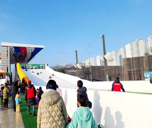 | ▲ 올해 1월 운영한 ‘하하호호 올림픽 눈썰매장’ 모습(좌, 중) |