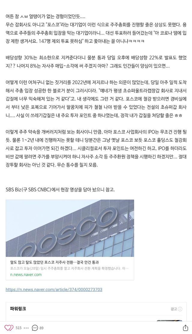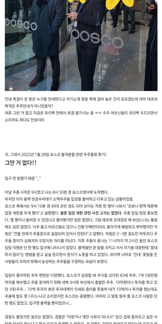 포스코 물적분할 주주총회 입구컷.. 실화?.
