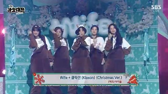 이날 이들은 귀여운 루돌프로 변신, '와이프’(Wife)', '클락션 (Klaxon)'으로 무대를 꾸몄다. 귀여운 멜빵 바지 의상을 입은 (여자)아이들 멤버들은 눈사람으로 변신한 댄서들과 귀엽고도 볼거리 넘치는 무대를 꾸며 객석을 사로잡았다.