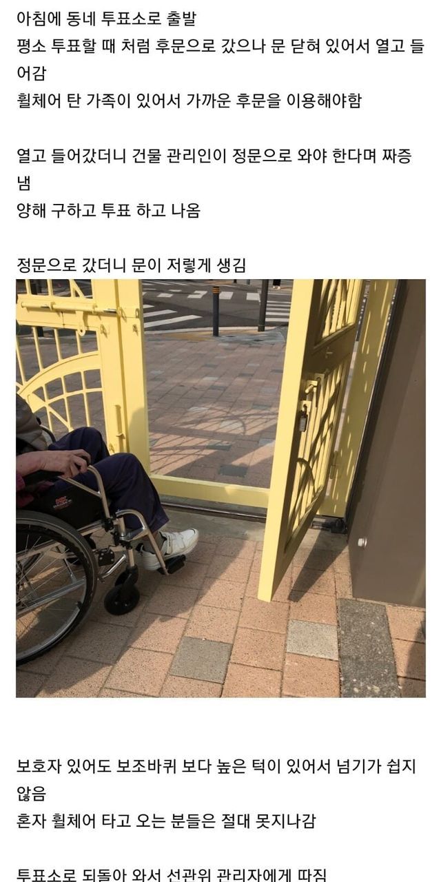 +사전투표 때 장애인신분증 들고 갔더니 인정 안해줘서 투표 못했다는 사람도 있었음