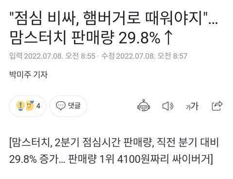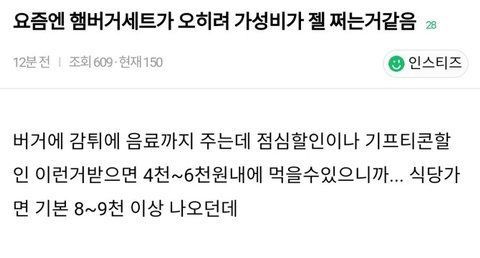 요즘 햄버거 세트가 가장 가성비 쩐다고 느낀다는 여초회원