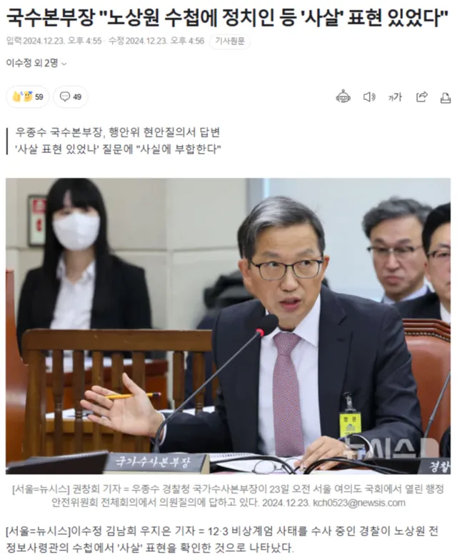 국수본부장 "노상원 수첩에 정치인 등 '사살' 표현 있었다"