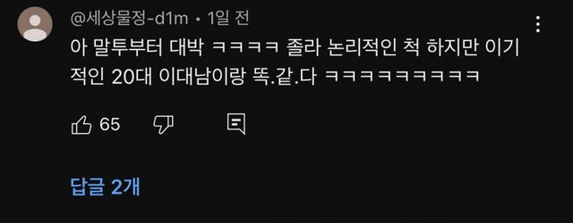 댓글반응은 이대남이랑 완전 똑같다고 이대남 까는중