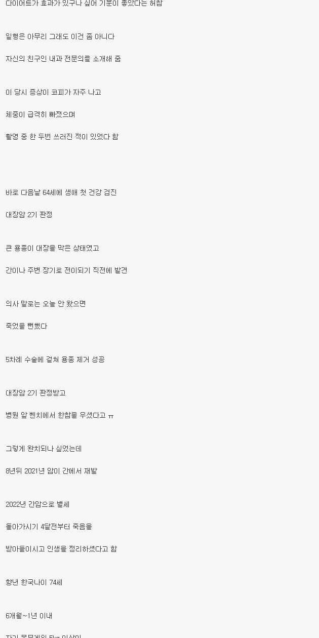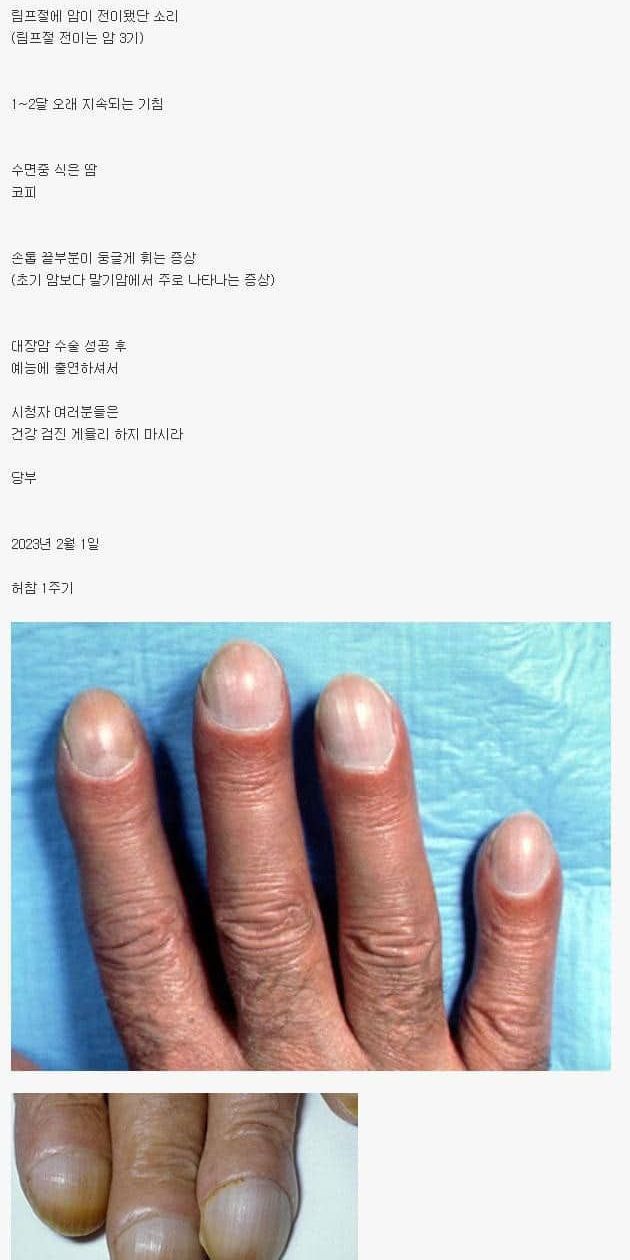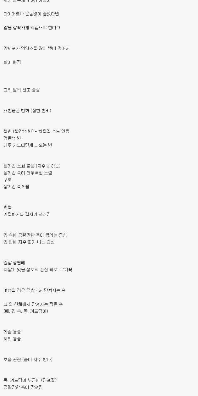 연예인이 느낀 암의 전조 증상 ㄷㄷㄷ