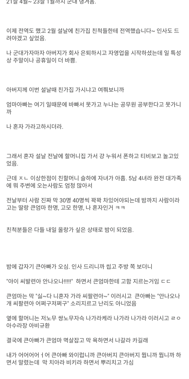 군대 갔다왔더니 친가댁 박살난 썰.