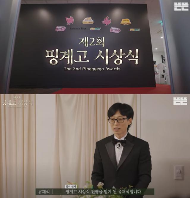 지난 22일 유튜브 채널 ‘뜬뜬’에서 ‘핑계고’의 제2회 시상식 열렸다. ‘핑계고’는 방송인 유재석이 진행하는 유튜브 토크쇼로, 시상식은 ‘핑계고’에 출연한 스타들을 불러 올해의 활약상을 돌아보고 상을 수여하는 형식으로 치러졌다. 지난해 1회와 마찬가지로 ‘핑계고’를 녹화하는 사무실 공간을 소박하게 꾸며 유재석 홀로 MC를 맡아 진행했다. 시상식순은 수상, 럭키드로우 게임, 축하공연 등 지난해와 비슷하게 진행됐는데 참석자는 총 12명이었던 1회보다 두배 이상 많은 25명이었다.