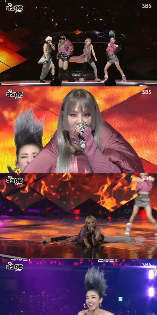 특히 씨엘의 파워풀한 래핑, 박봄의 풍부한 성량, 트레이드마크인 산다라박의 파격적인 헤어, 공민지의 다리찢기 퍼포먼스까지 전성기 그대로인 모습으로 시간을 되돌린 듯한 환상적인 무대를 완성했다.