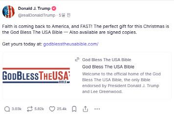 트럼프 당선인은 오래전부터 자신의 사진을 박은 ‘트럼프 디지털 트레이딩 카드’라는 이름의 NFT 컬렉션과 비싼 운동화 시계, 자신의 이름을 사인한 성경 등 온갖 굿즈를 판매해왔다. 그러나 1월 20일 대통령 취임식을 앞두고 이러한 판매활동을 확대하면서 대통령직과 그의 개인적 사업 이익과의 이해충돌 가능성이 커지고 있다. 그는 이달 트루스소셜에 시리아 내전과 정부 예산안 등 현안에 대한 입장을 올리는 와중에도 중간중간 계속 크리스마스 제품을 홍보했으며 곧 퍼스트레이디가 될 부인 멜라니아 트럼프는 폭스뉴스 인터뷰에서 자신의 크리스마스 장식과 목걸이를 홍보했다.